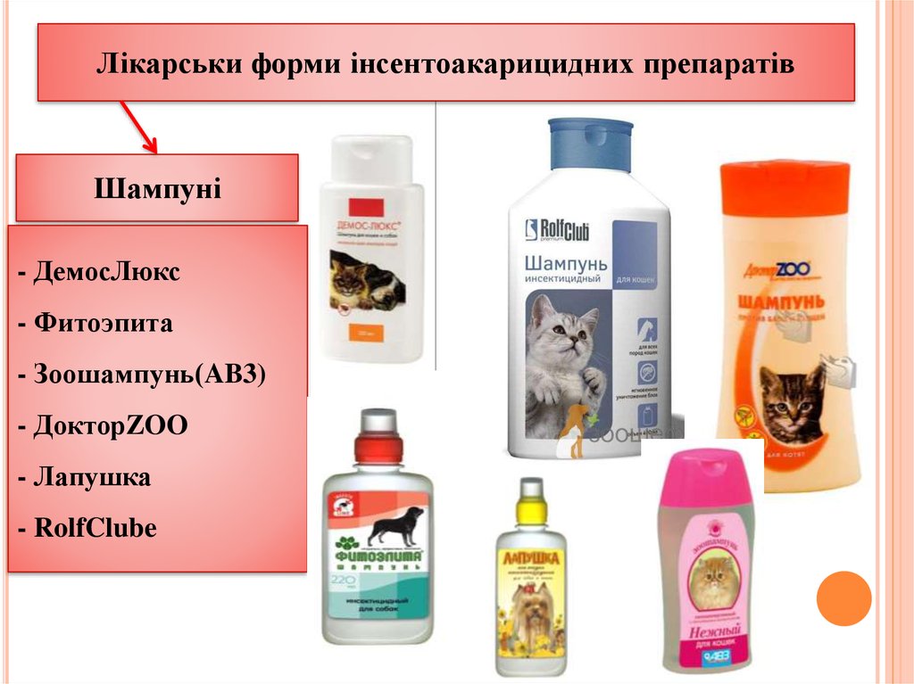 Лікарськи форми інсентоакарицидних препаратівШампуні