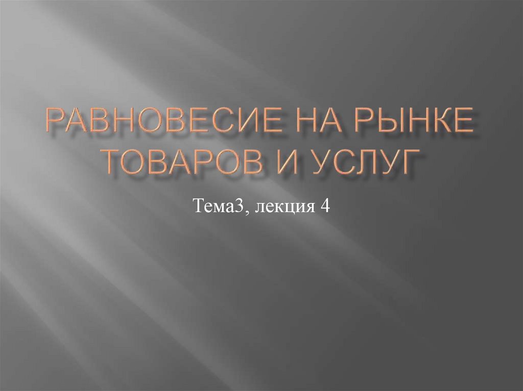 1. РАВНОВЕСИЕ НА РЫНКЕ ТОВАРОВ И УСЛУГ