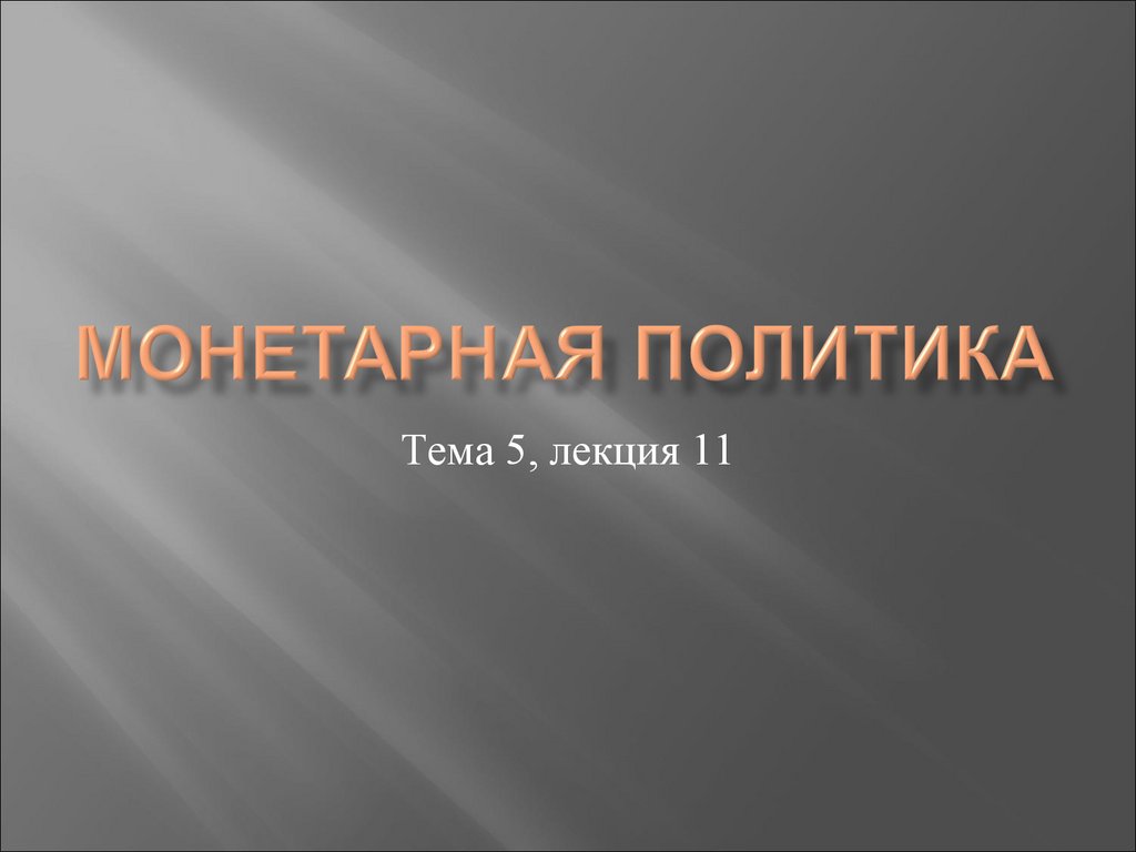 Тема 5, лекция 112. Монетарная политика и ее цели