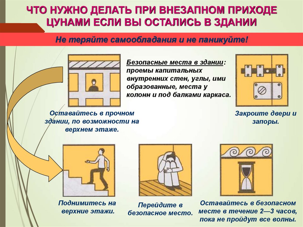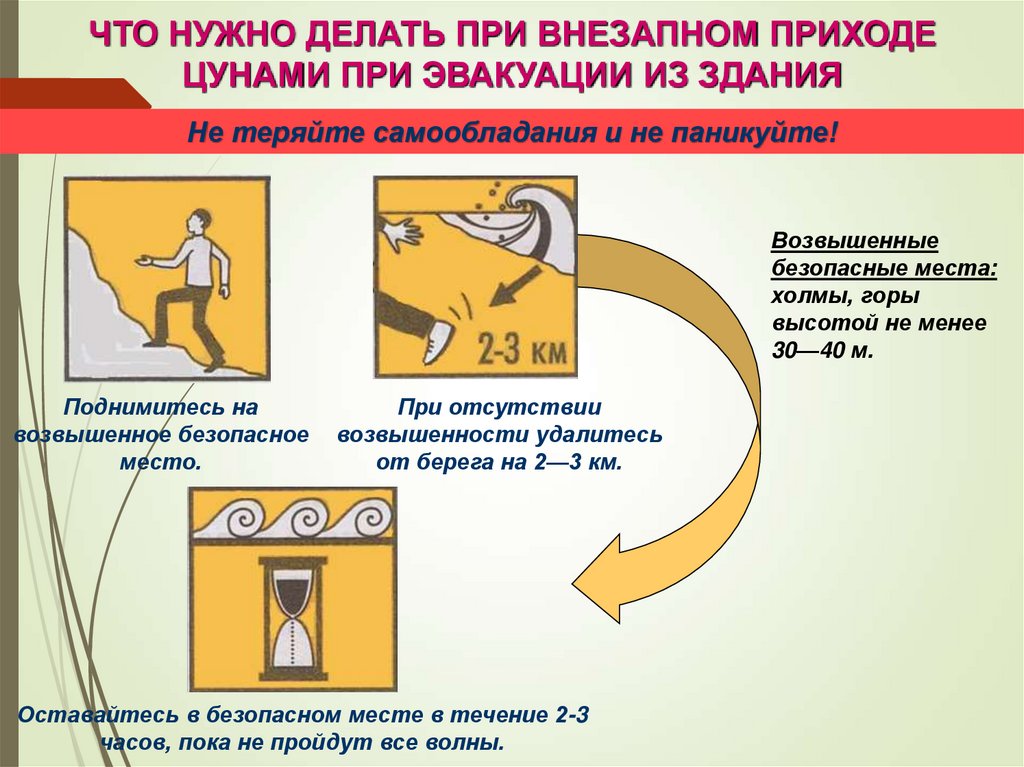 ЧТО НУЖНО ДЕЛАТЬ ПРИ ВНЕЗАПНОМ ПРИХОДЕЦУНАМИ ПРИ ЭВАКУАЦИИ ИЗ ЗДАНИЯ