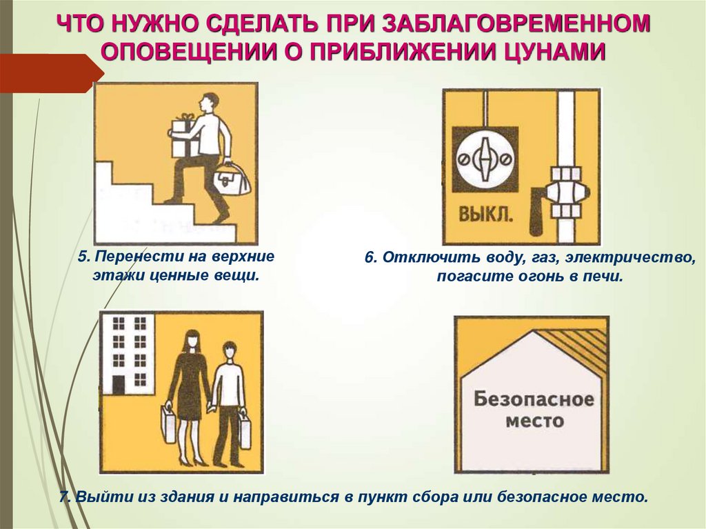 4. ЧТО НУЖНО СДЕЛАТЬ ПРИ ЗАБЛАГОВРЕМЕННОМОПОВЕЩЕНИИ О ПРИБЛИЖЕНИИ ЦУНАМИ
