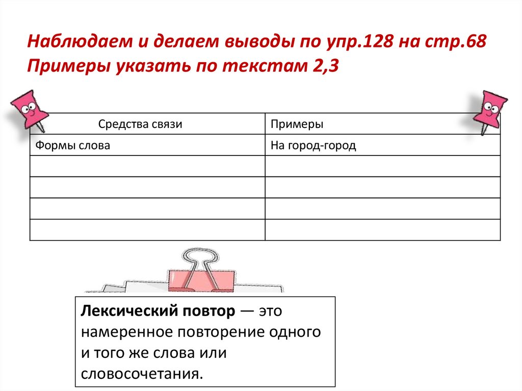Наблюдаем и делаем выводы по упр.128 на стр.68Примеры указать по текстам 2,3