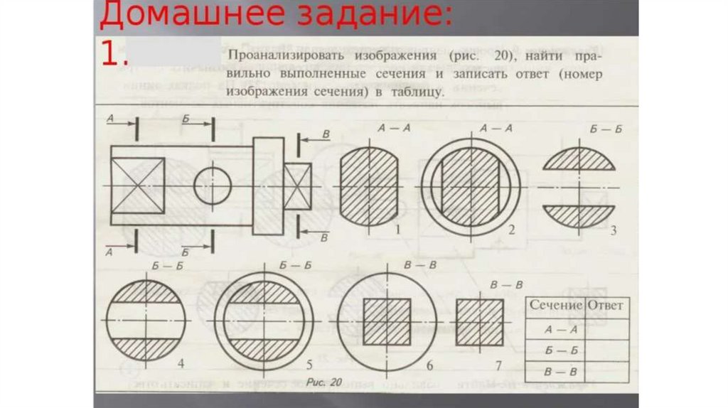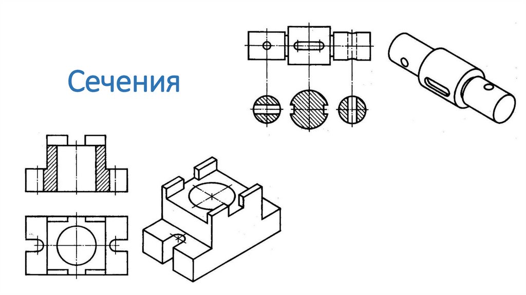 Сечение – это изображение фигуры, получающейся при мысленномрассечении предмета одной или несколькими плоскостями.