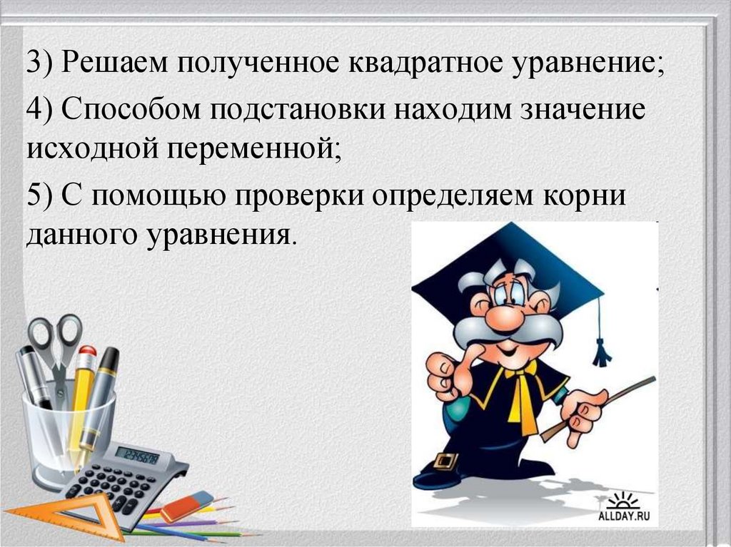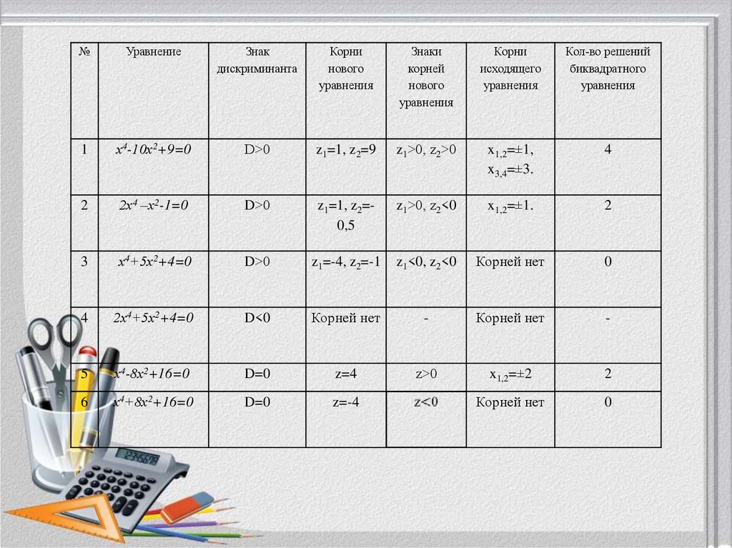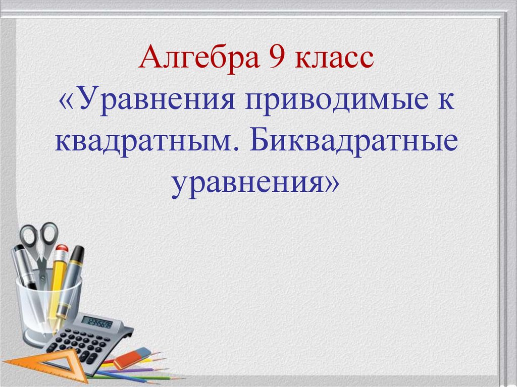 1. Алгебра 9 класс «Уравнения приводимые к квадратным. Биквадратные уравнения»