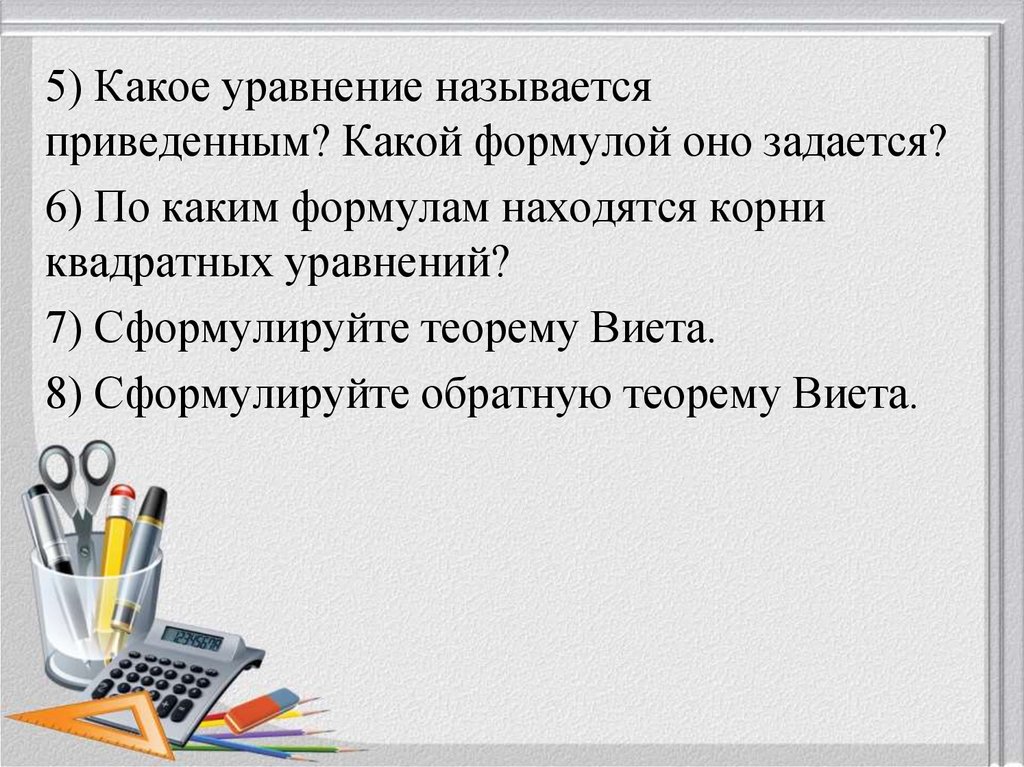 1) Какое уравнение называется квадратным?2) Что называется дискриминантом