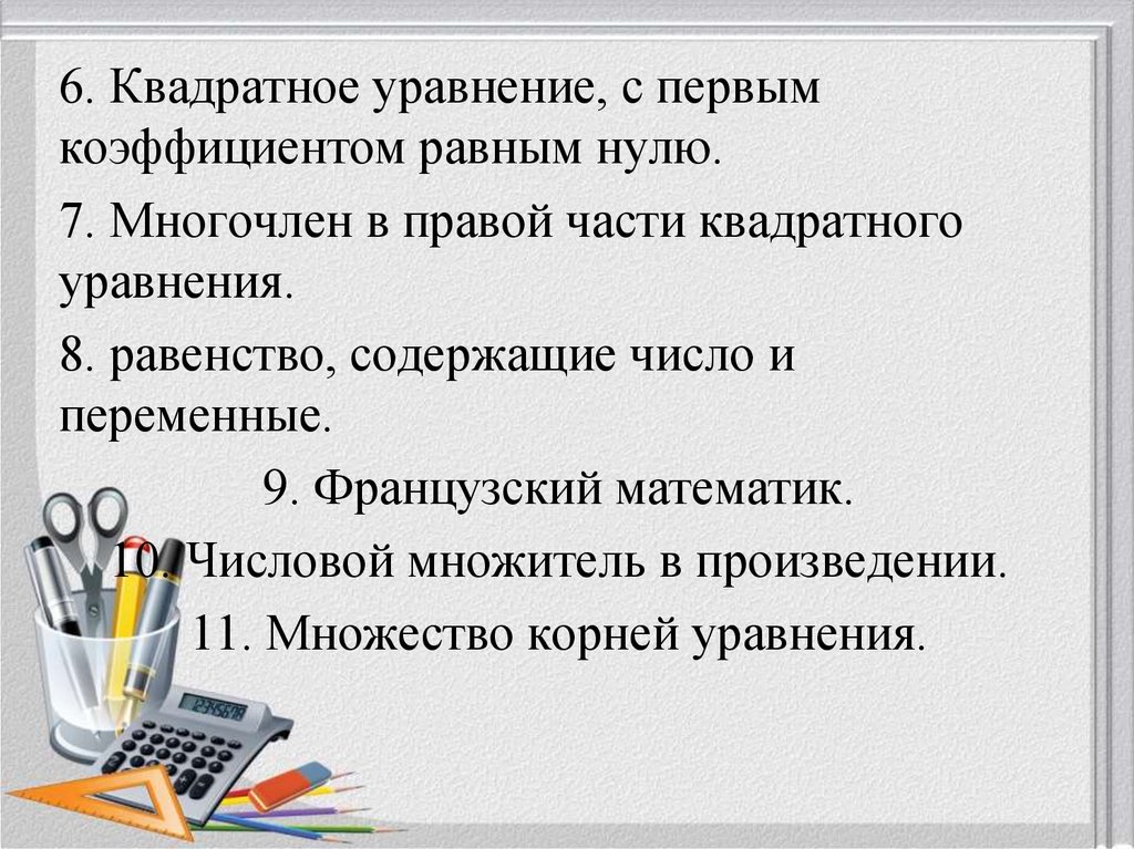 6. Квадратное уравнение, с первымкоэффициентом равным нулю.