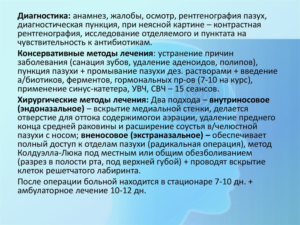Лечение при хр. – хирургическая тактика, ч/з в/челюстную пазуху, вскрывают