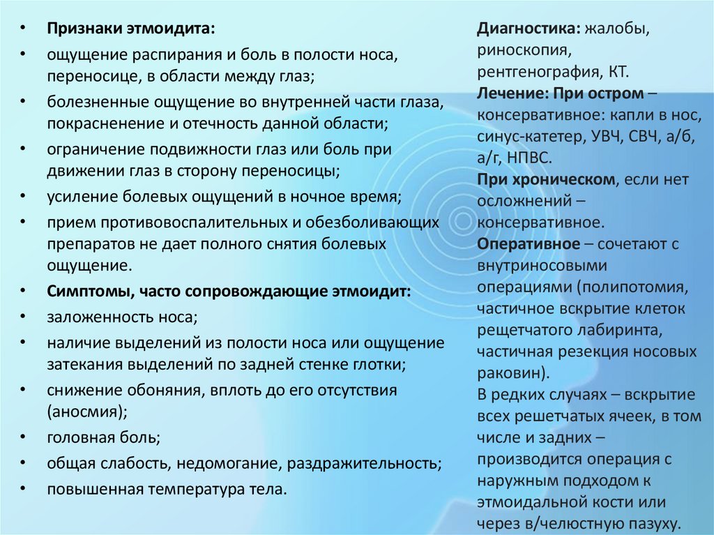 21. Воспаление клеток решетчатого лабиринта (этмоидит)
