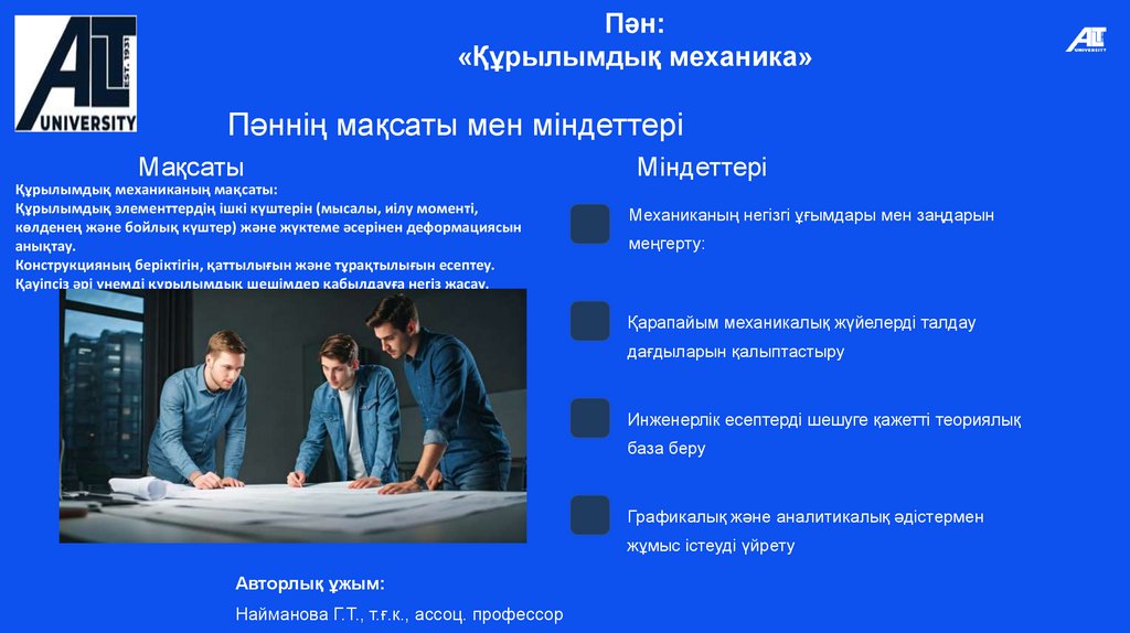 Пән:«Құрылымдық механика»
