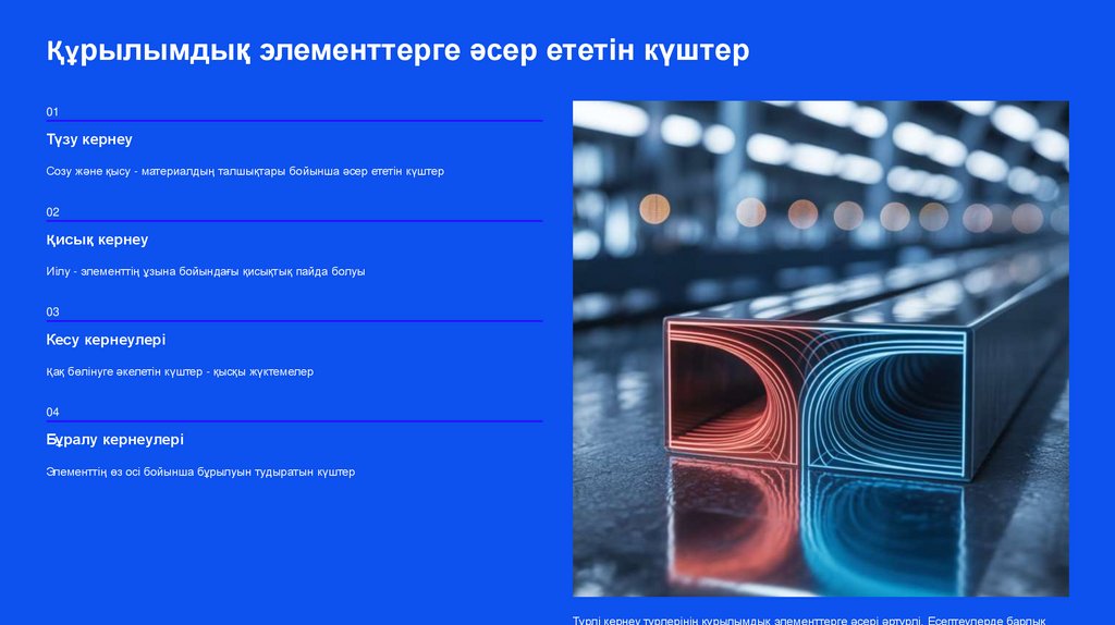 көлденең және бойлық күштер) және жүктеме әсерінен деформациясын