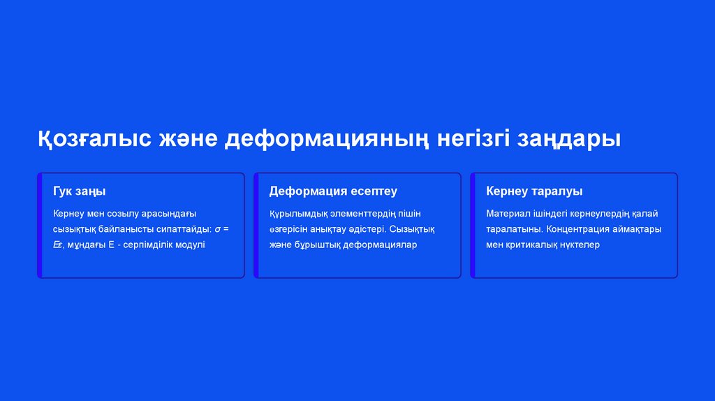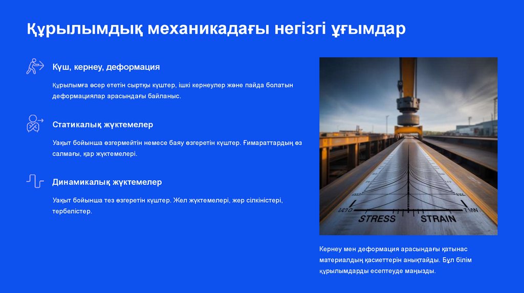 Құрылымдық механикадағы негізгі ұғымдарКүш, кернеу, деформация