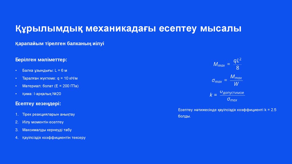 Құрылымдық механикадағы есептеу мысалыҚарапайым тірелген балканың иілуі