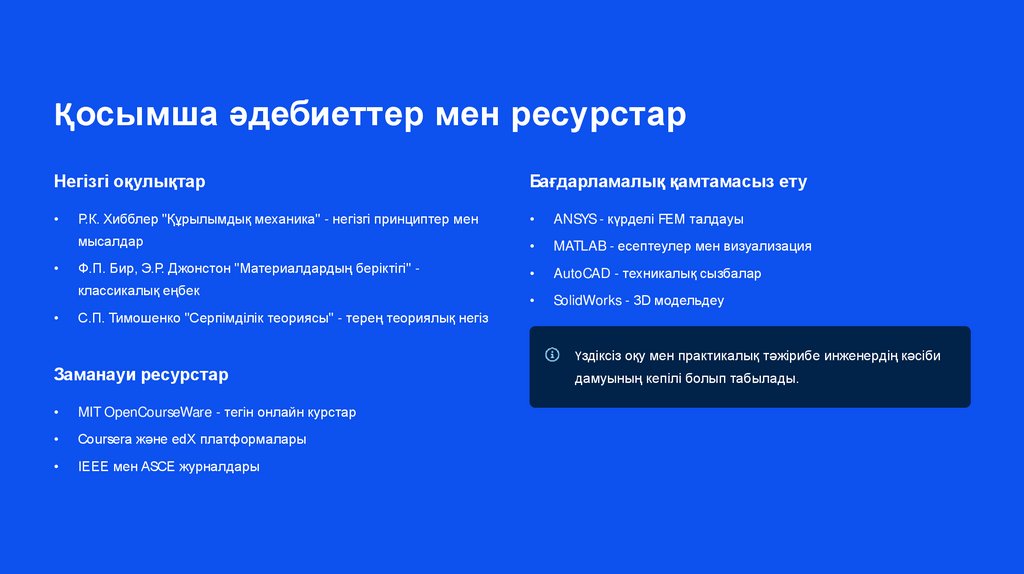 Қосымша әдебиеттер мен ресурстарНегізгі оқулықтар