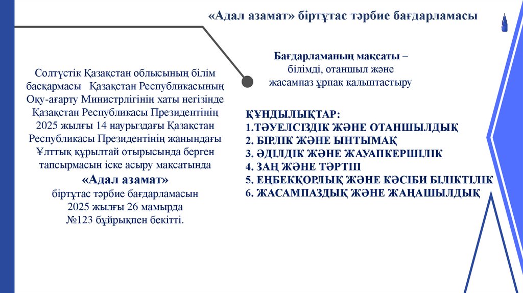 «Адал азамат» біртұтас тәрбие бағдарламасыСолтүстік Қазақстан облысының білім