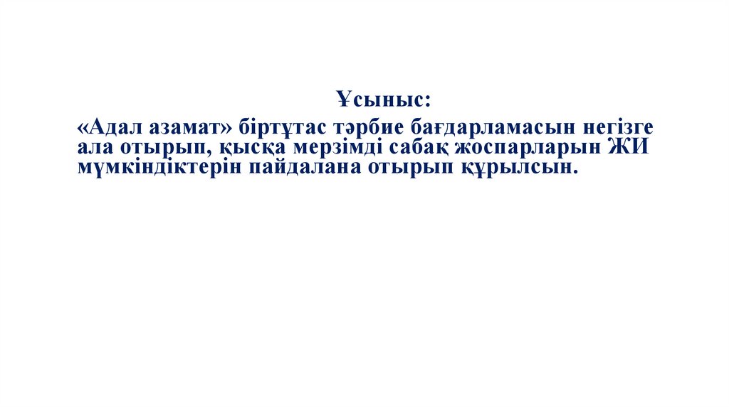 Ұсыныс:«Адал азамат» біртұтас тәрбие бағдарламасын негізге