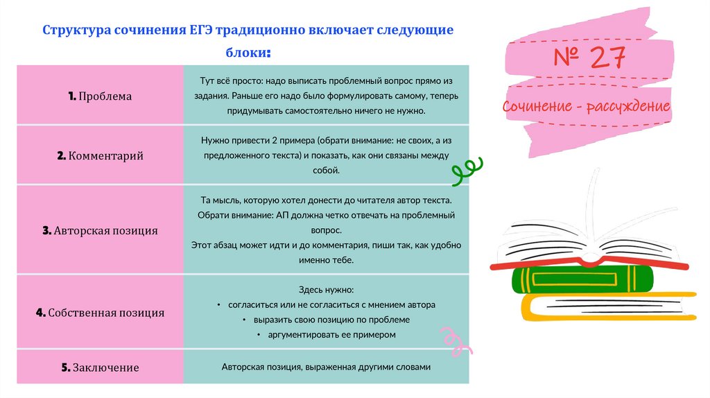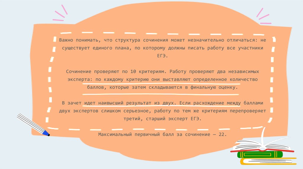 Важно понимать, что структура сочинения может незначительно отличаться: несуществует единого плана, по которому должны писать работу все участники