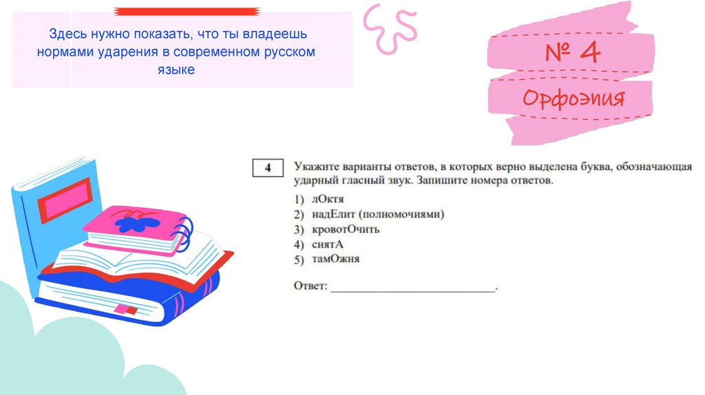 Здесь нужно показать, что ты владеешьнормами ударения в современном русском