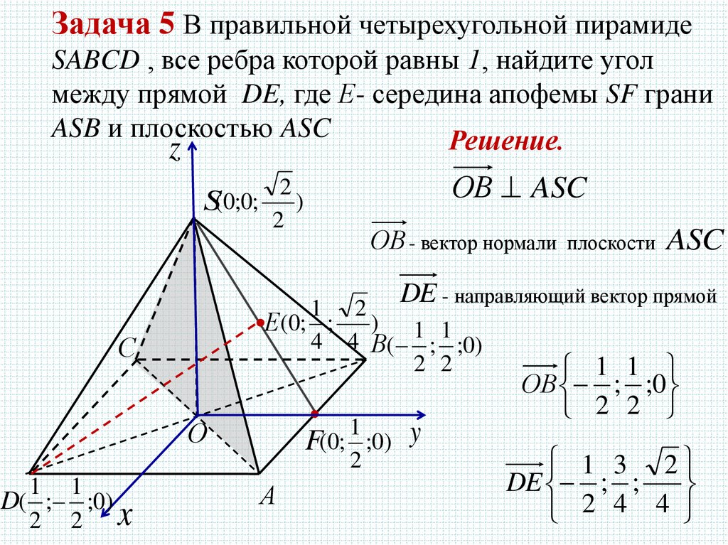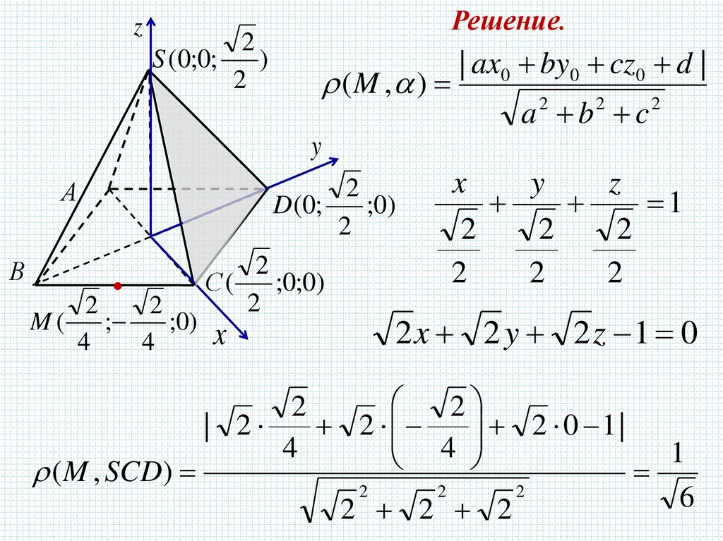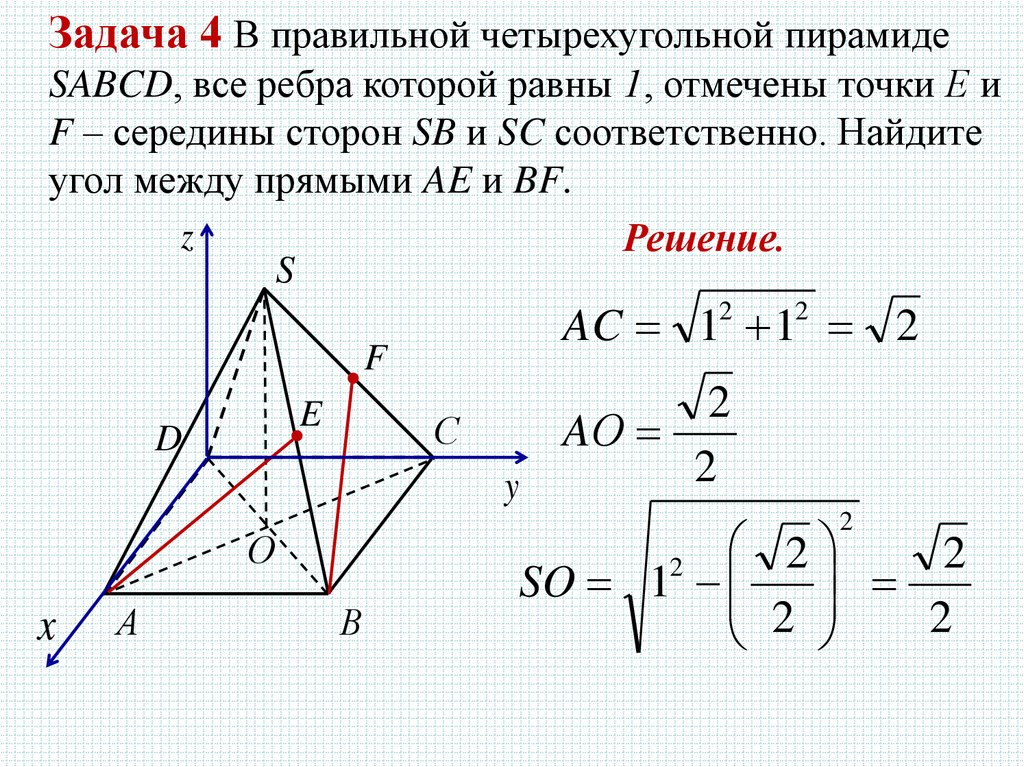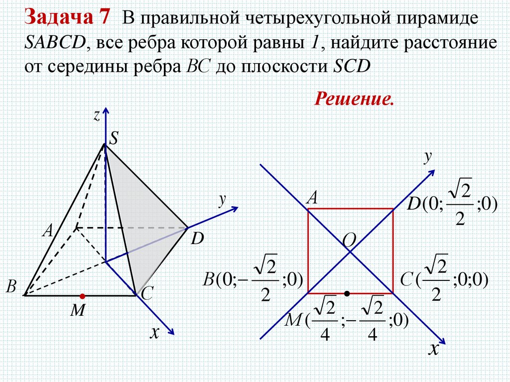 Задача 7 В правильной четырехугольной пирамидеSABCD, все ребра которой равны 1, найдите расстояние