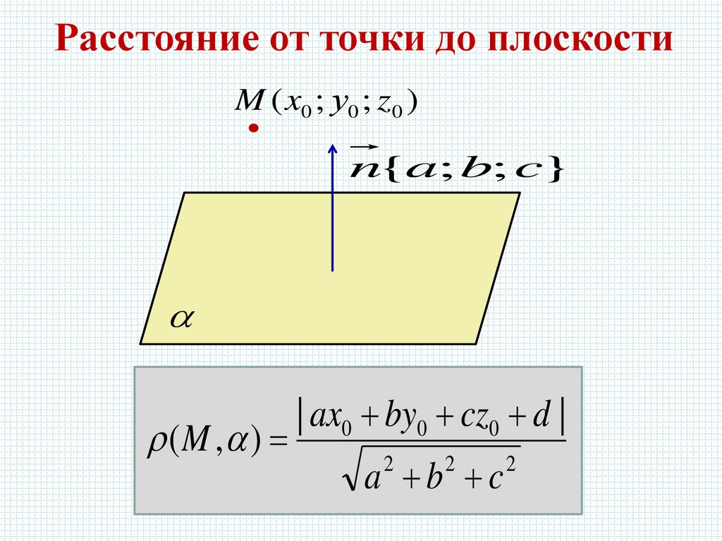 Расстояние от точки до плоскостиM ( x0 ; у0 ; z0 )