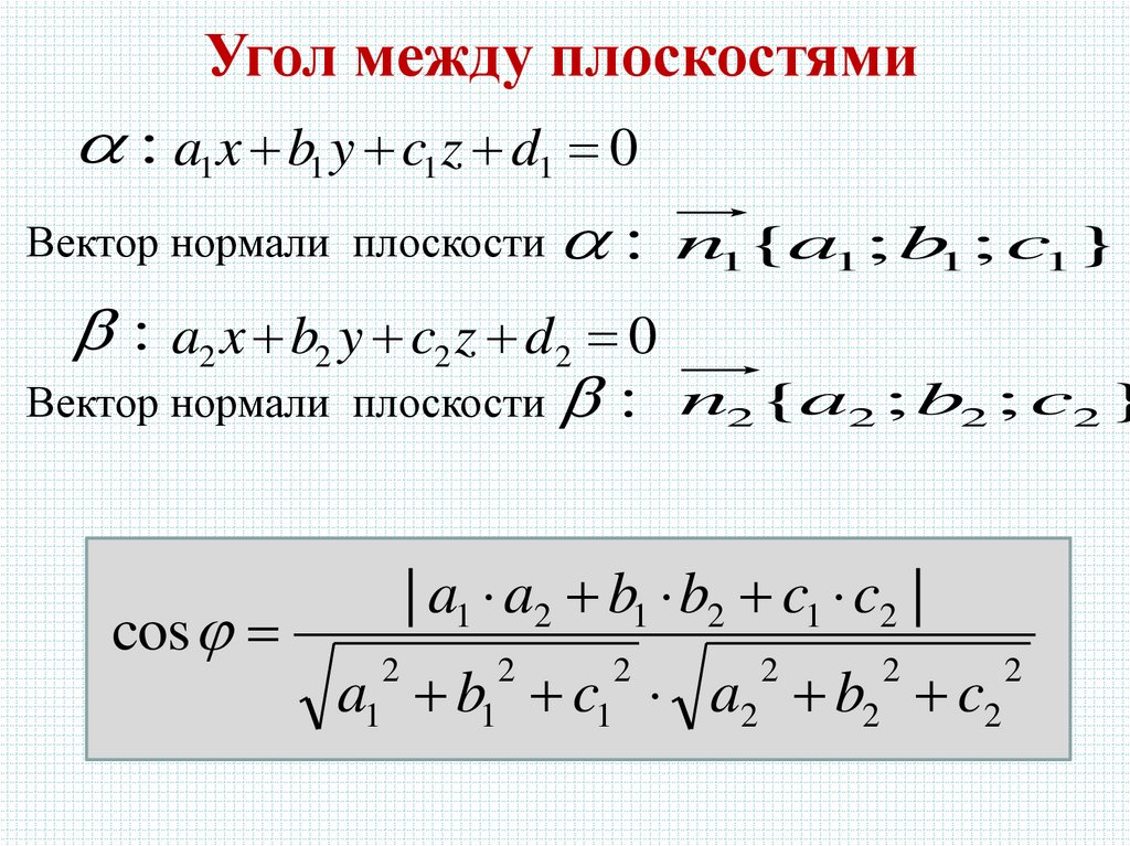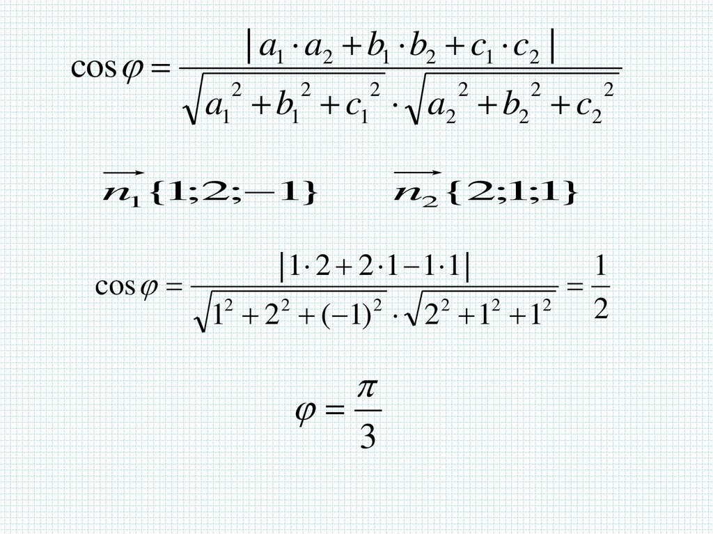 Угол между плоскостями: a1x b1 y c1z d1 0