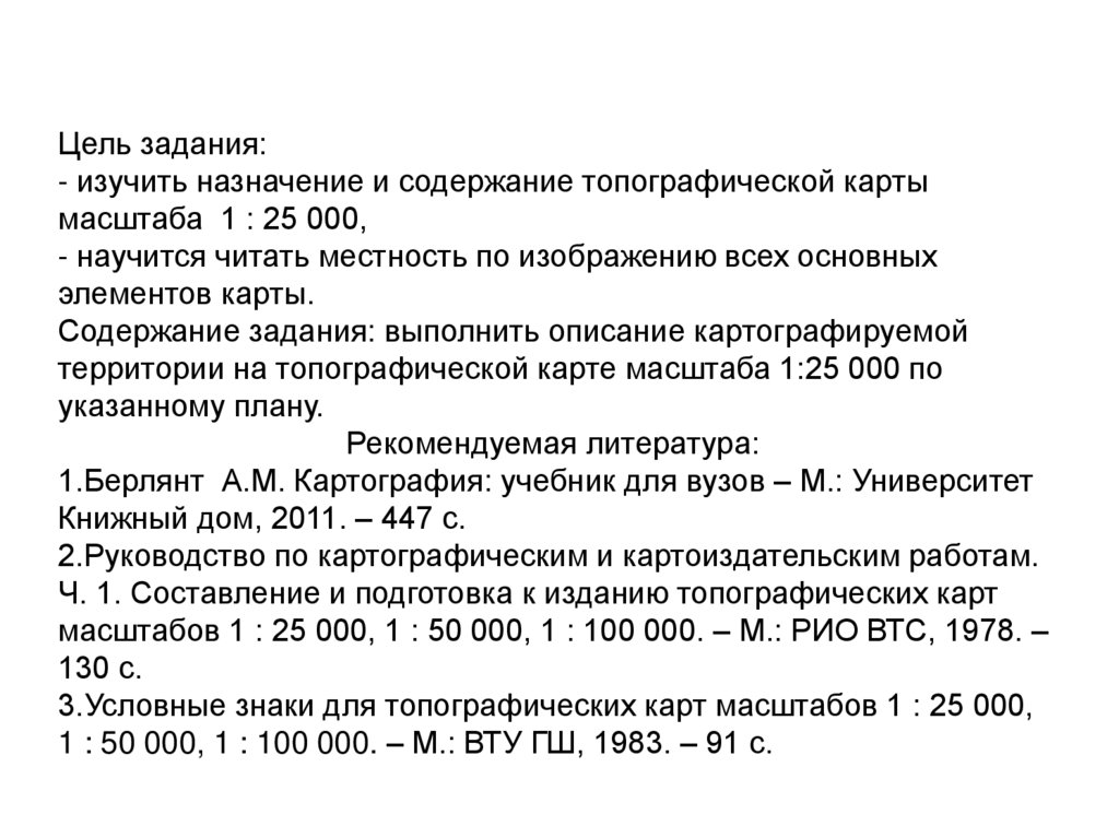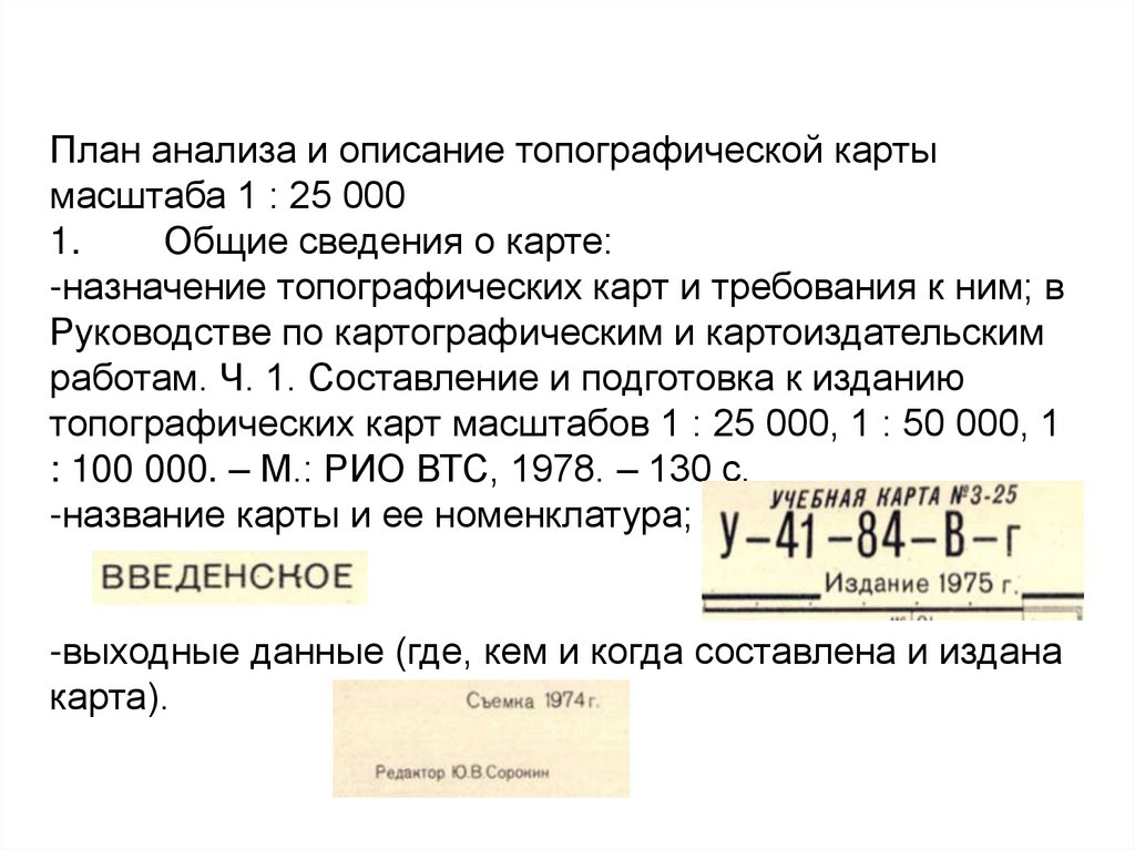 План анализа и описание топографической картымасштаба 1 : 25 000