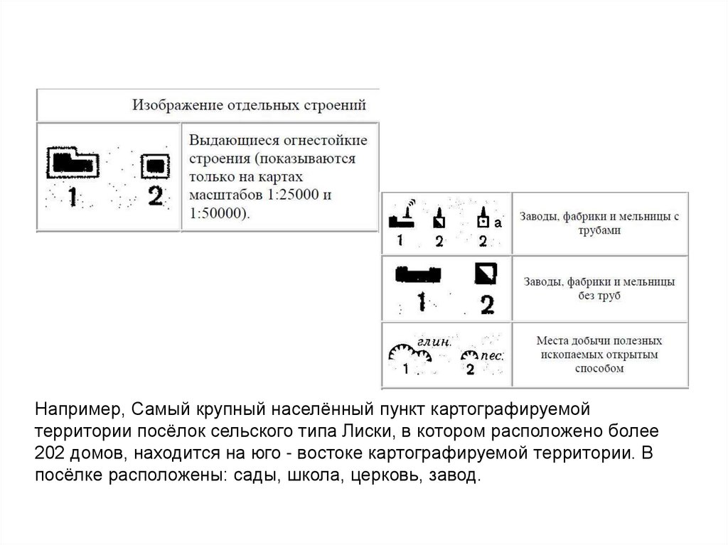 Например, Самый крупный населённый пункт картографируемойтерритории посёлок сельского типа Лиски, в котором расположено более