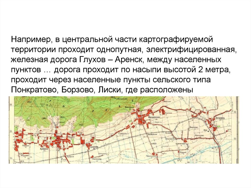 Например, в центральной части картографируемойтерритории проходит однопутная, электрифицированная,