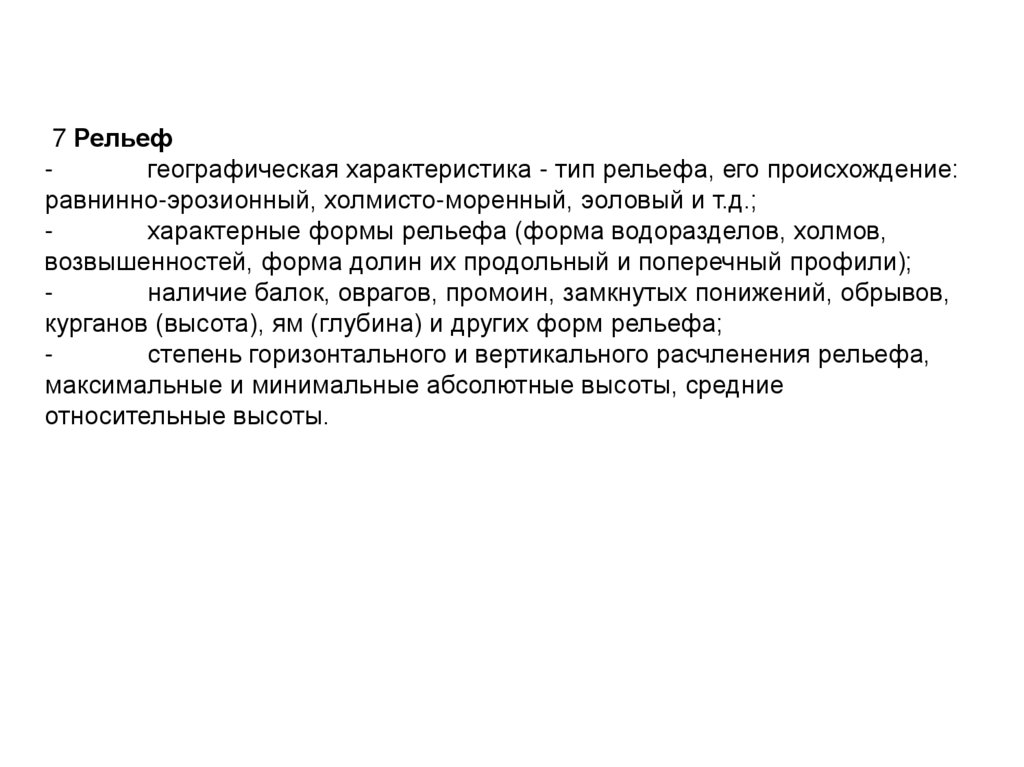 7 Рельефгеографическая характеристика - тип рельефа, его происхождение: