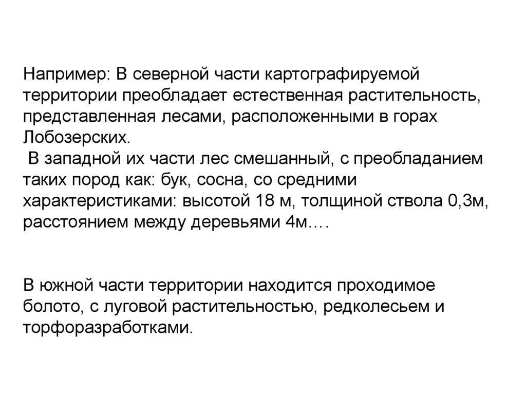 Например: В северной части картографируемойтерритории преобладает естественная растительность,