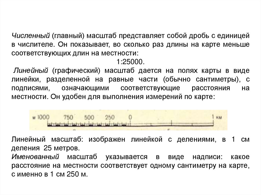 Численный (главный) масштаб представляет собой дробь с единицейв числителе. Он показывает, во сколько раз длины на карте меньше