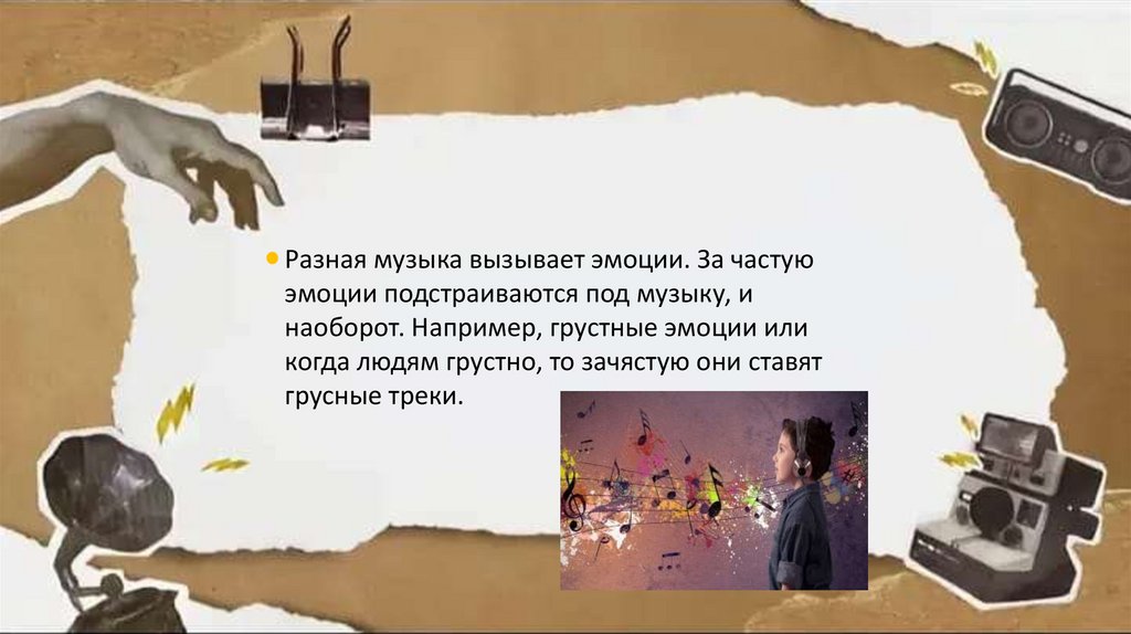 Разная музыка вызывает эмоции. За частуюэмоции подстраиваются под музыку, и