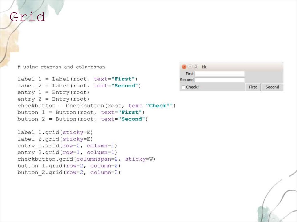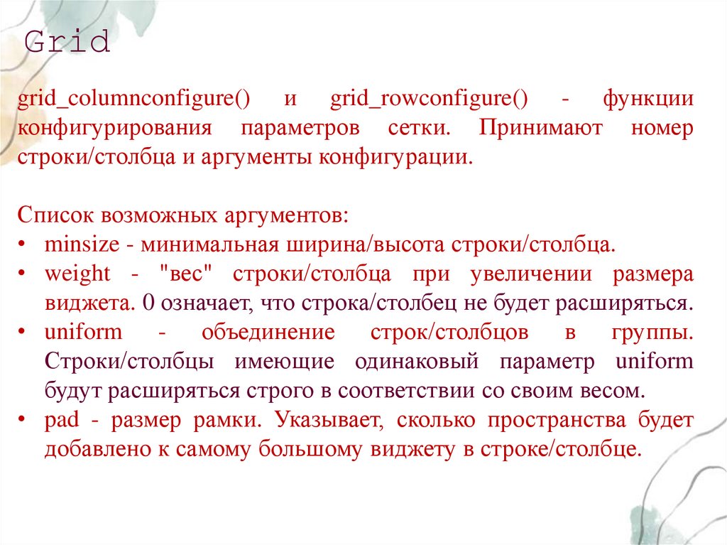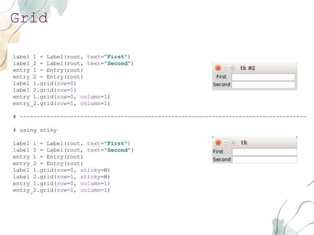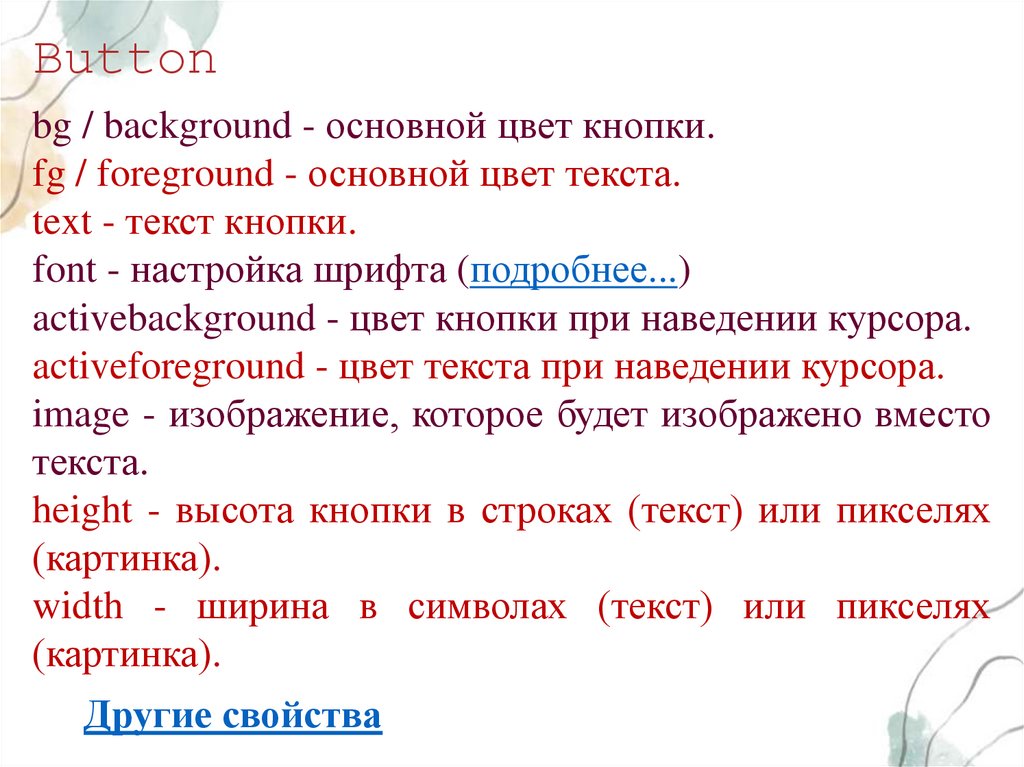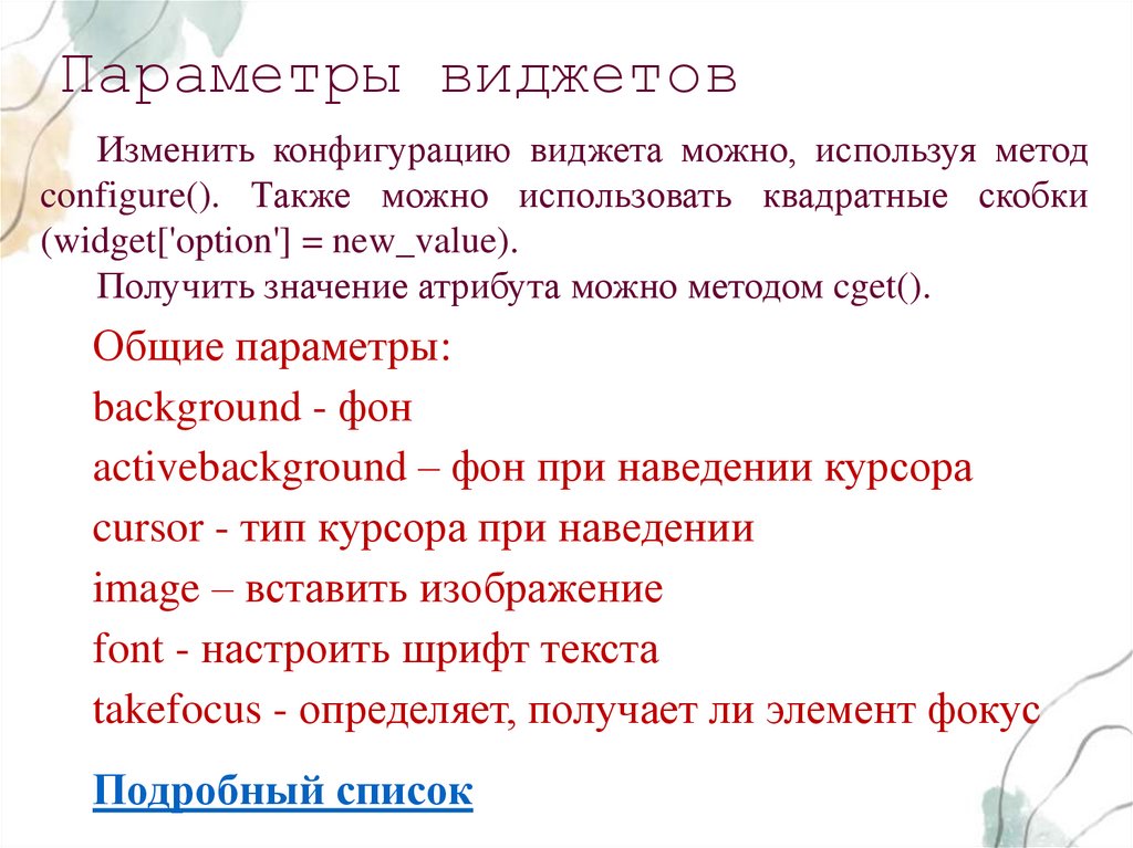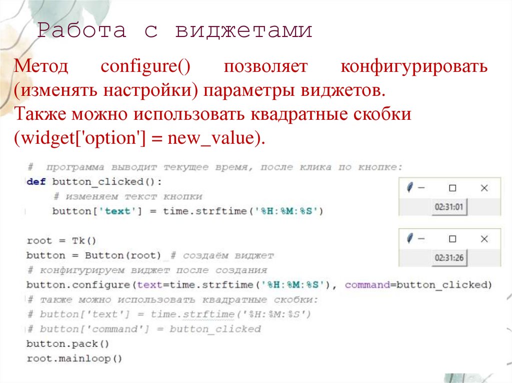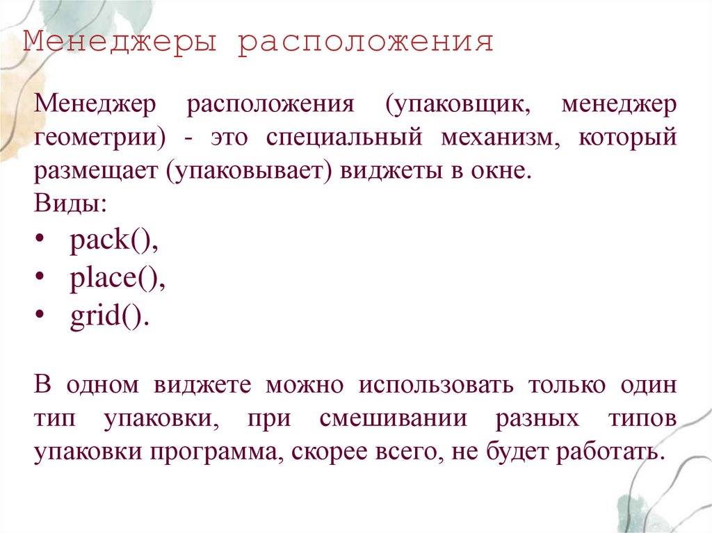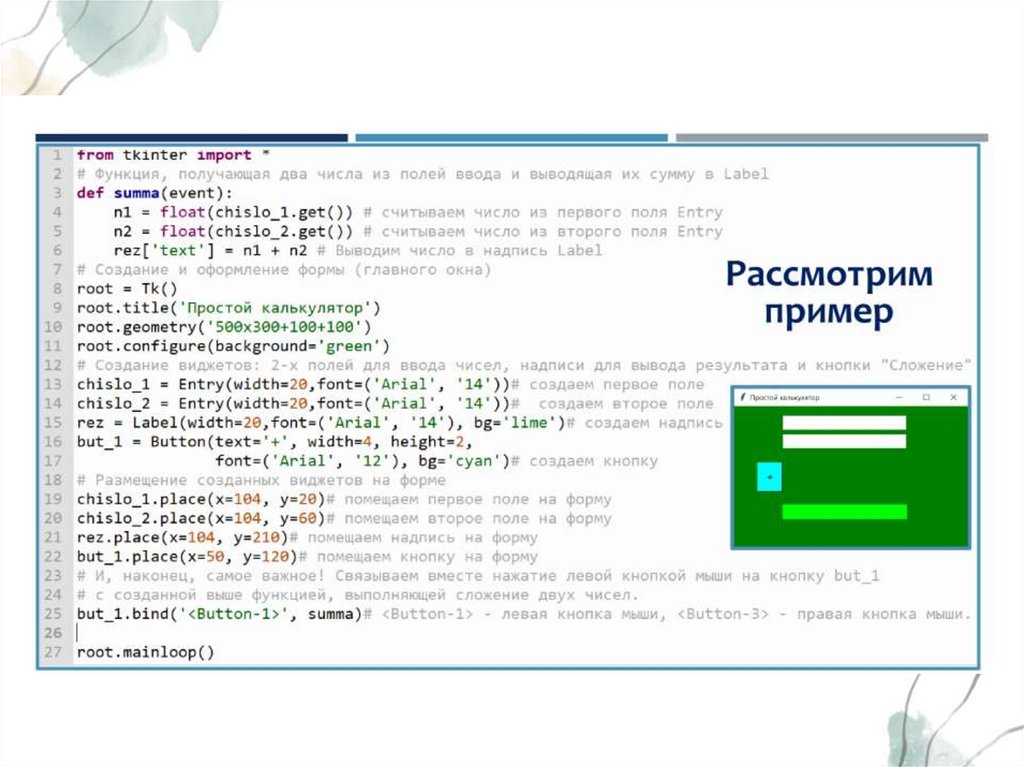 • bind_all() - создаёт привязку для всех виджетов приложения.
