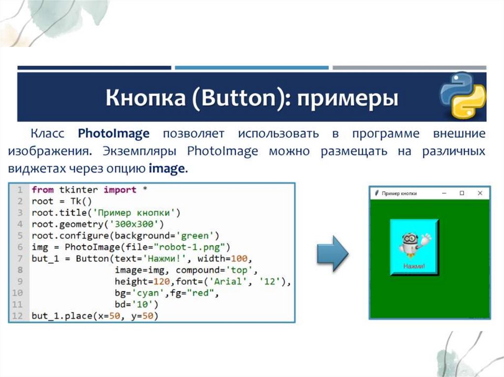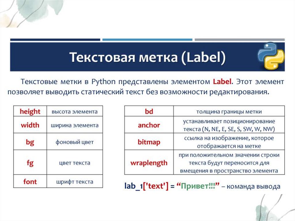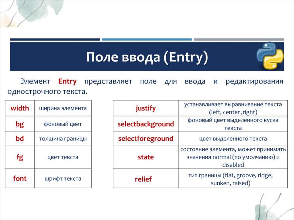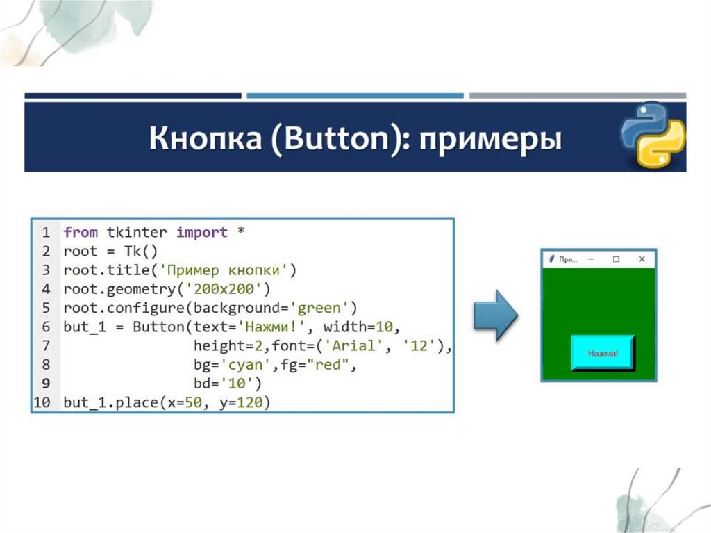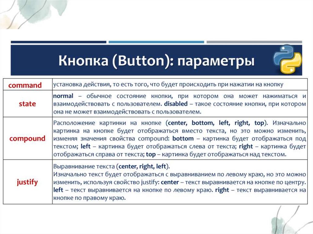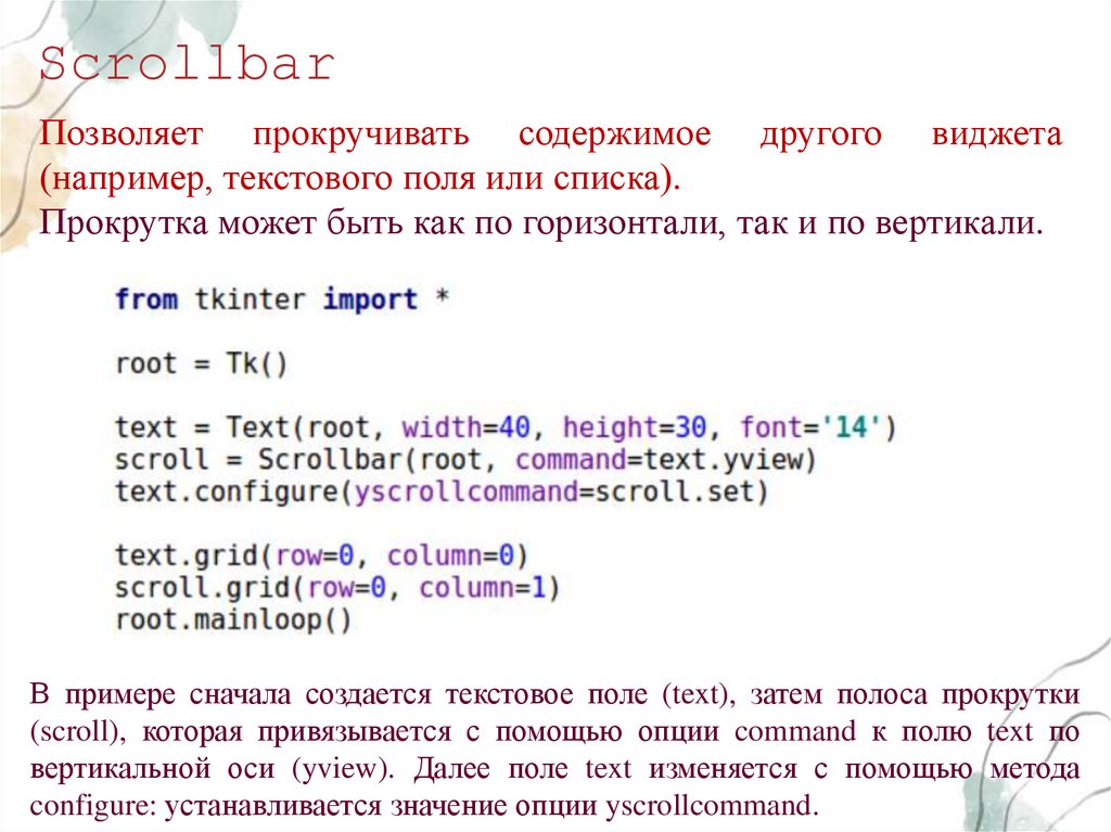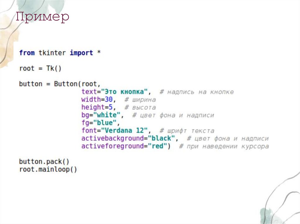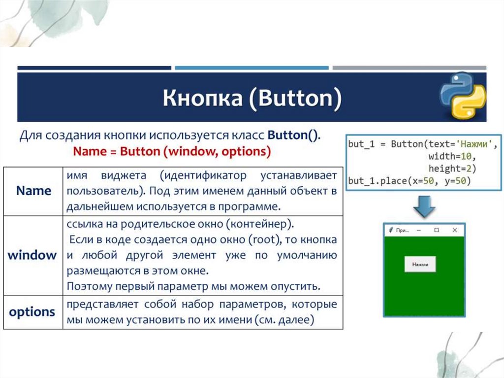 • bind_all() - создаёт привязку для всех виджетов приложения.