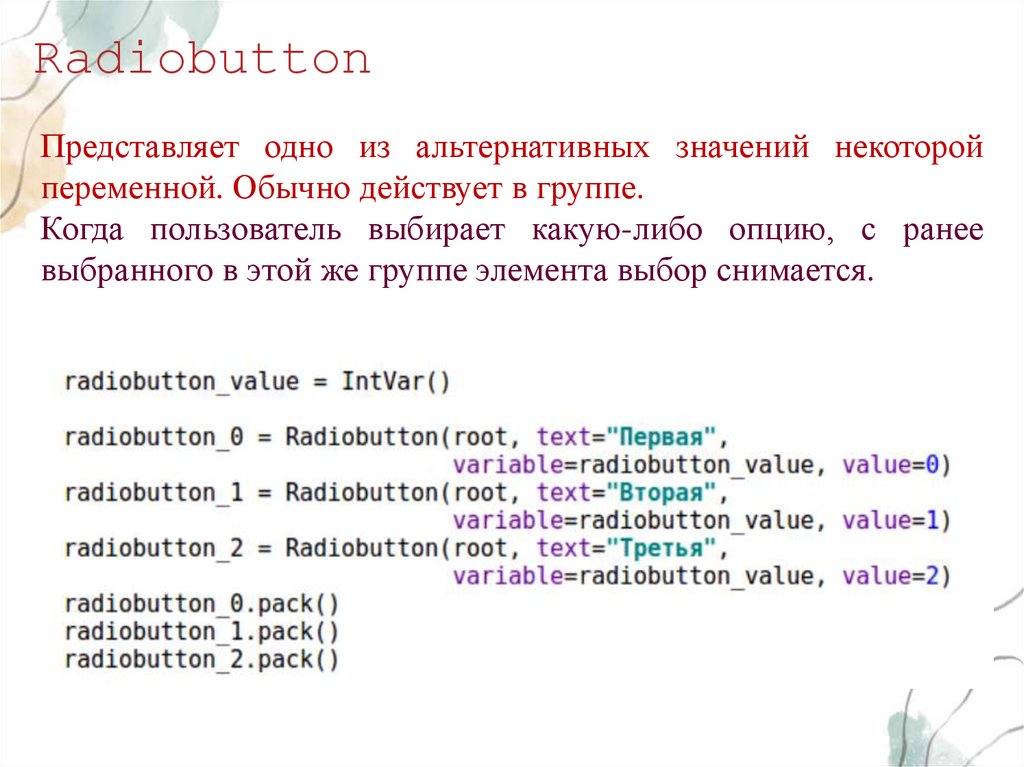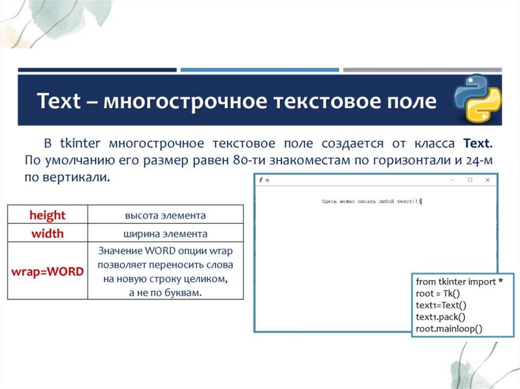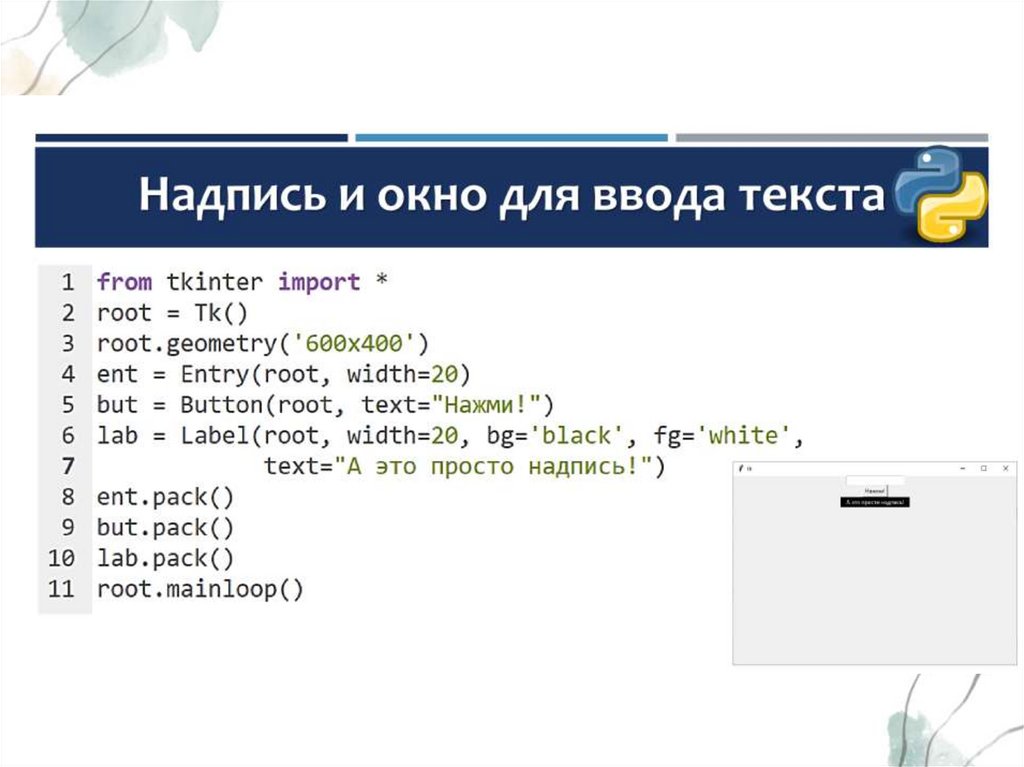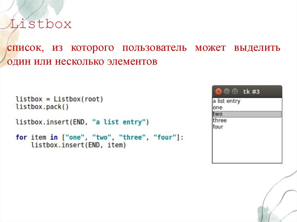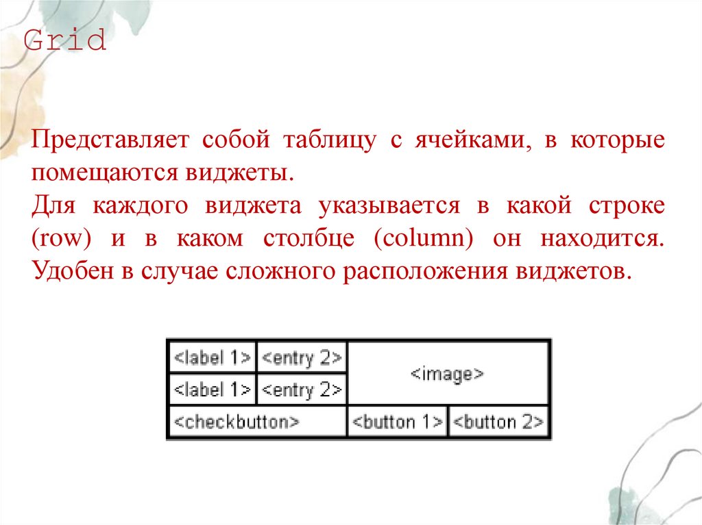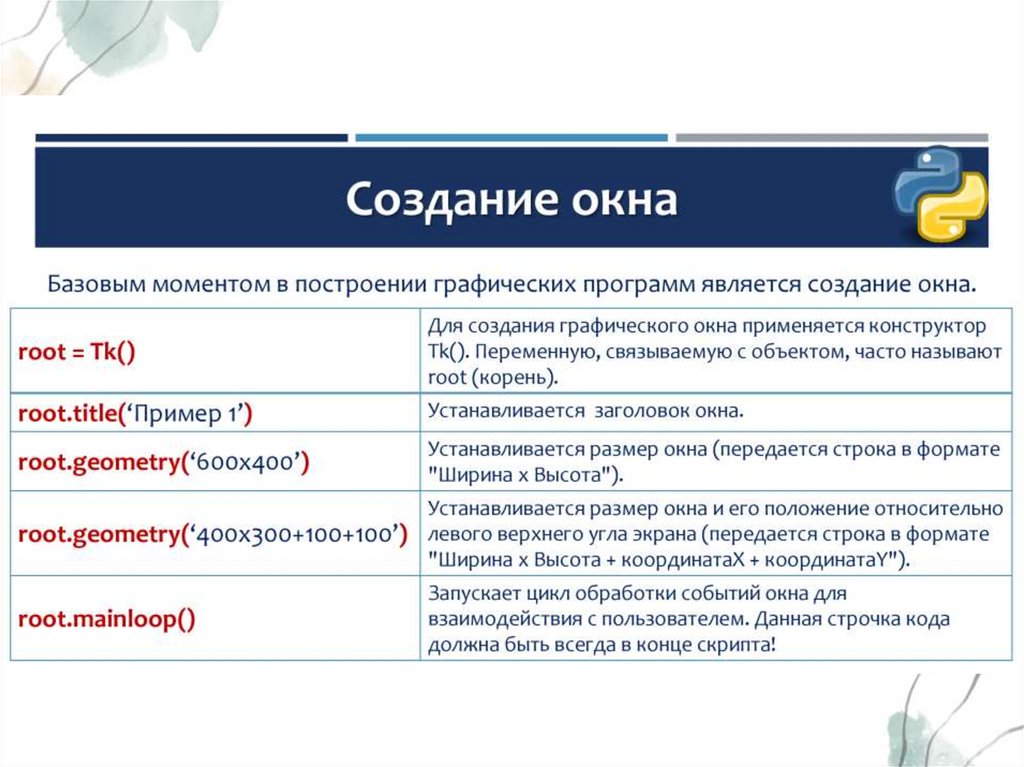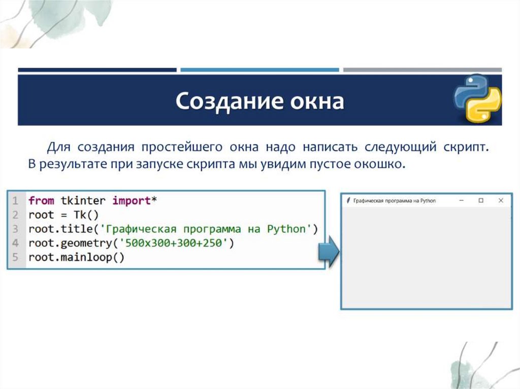 Tkinter• стандартная кроссплатформенная библиотека для создания
