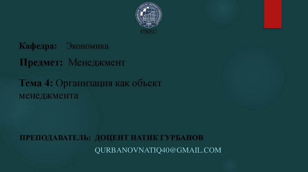 ПРЕПОДАВАТЕЛЬ: ДОЦЕНТ НАТИК ГУРБАНОВ