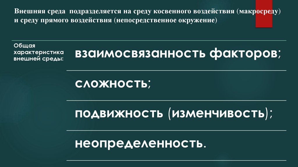 ВНУТРЕННЯЯ СРЕДА ОРГАНИЗАЦИИ