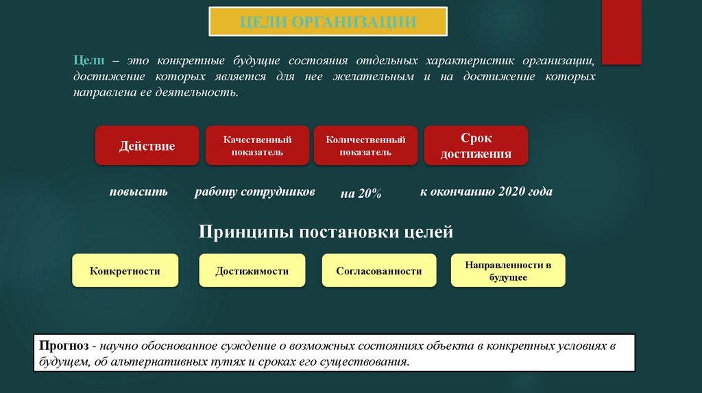 ЦЕЛИ ОРГАНИЗАЦИИЦели – это конкретные будущие состояния отдельных характеристик организации,