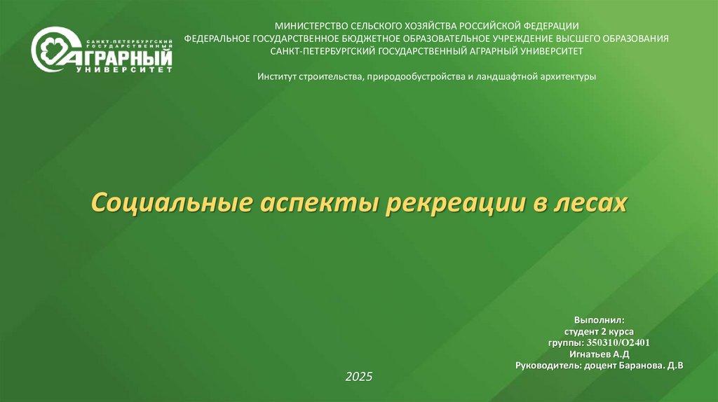 САНКТ-ПЕТЕРБУРГСКИЙ ГОСУДАРСТВЕННЫЙ АГРАРНЫЙ УНИВЕРСИТЕТ