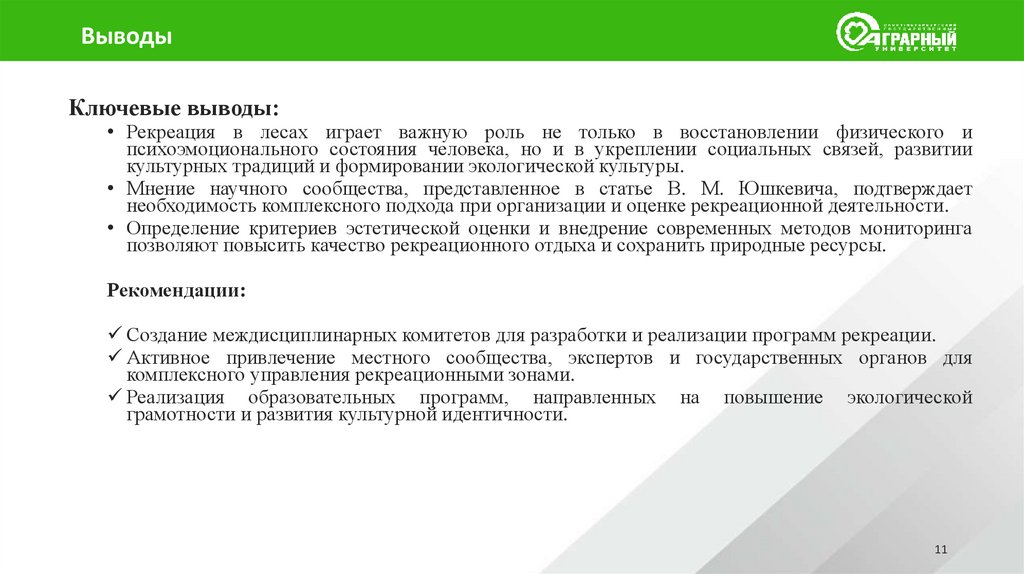 необходимость комплексного подхода при организации и оценке рекреационной деятельности.