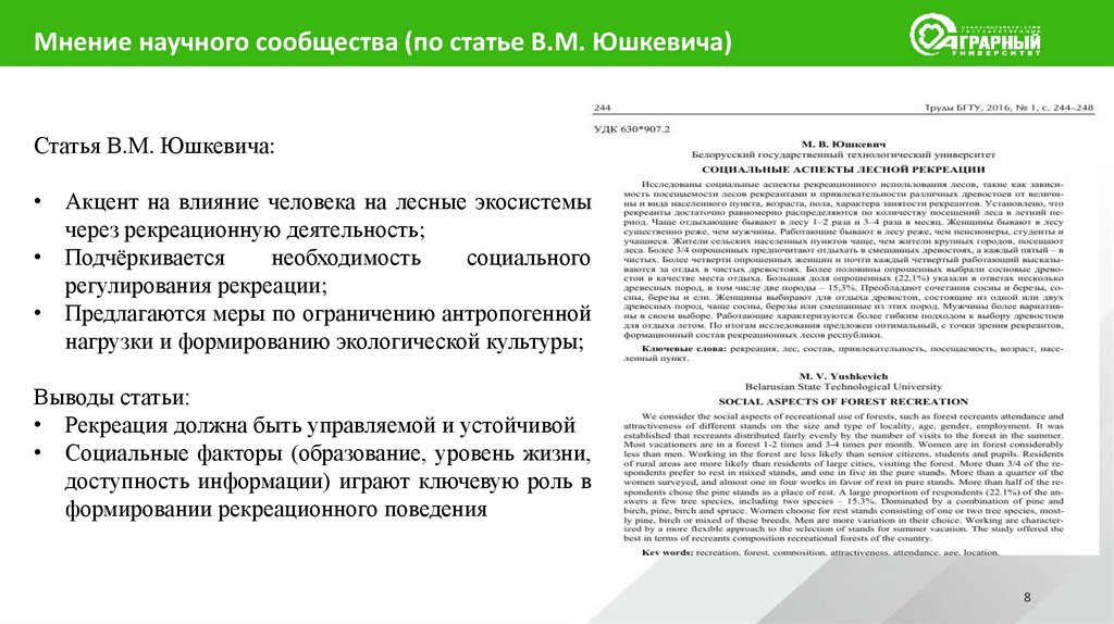 Мнение научного сообщества (по статье В.М. Юшкевича)Статья В.М. Юшкевича: