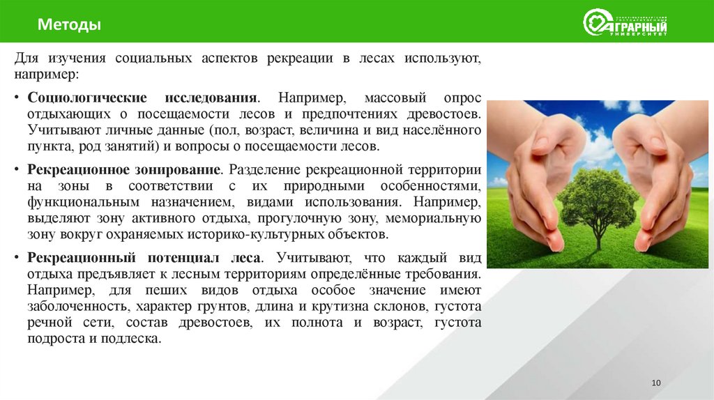 МетодыДля изучения социальных аспектов рекреации в лесах используют,