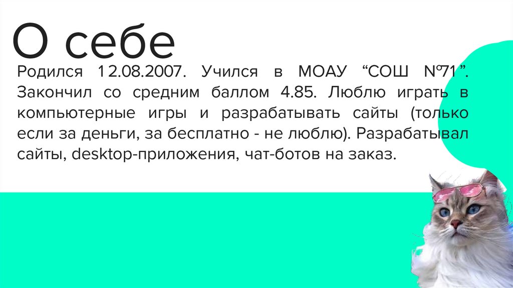 Родился 1 2.08.2007. Учился в МОАУ “СОШ №71 ”.