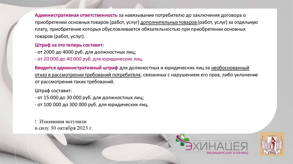 ответственности по Закону "О защите прав потребителей";