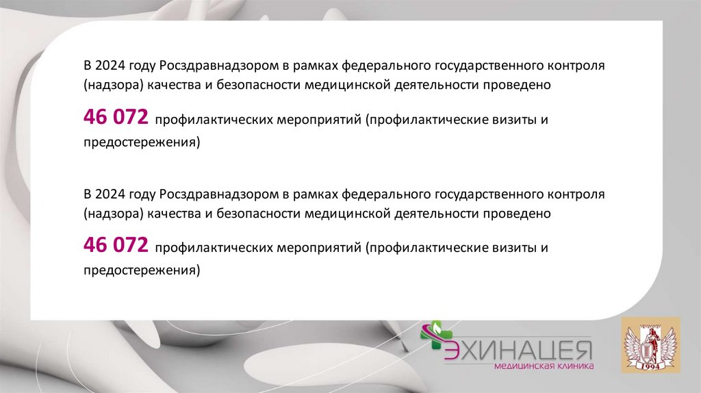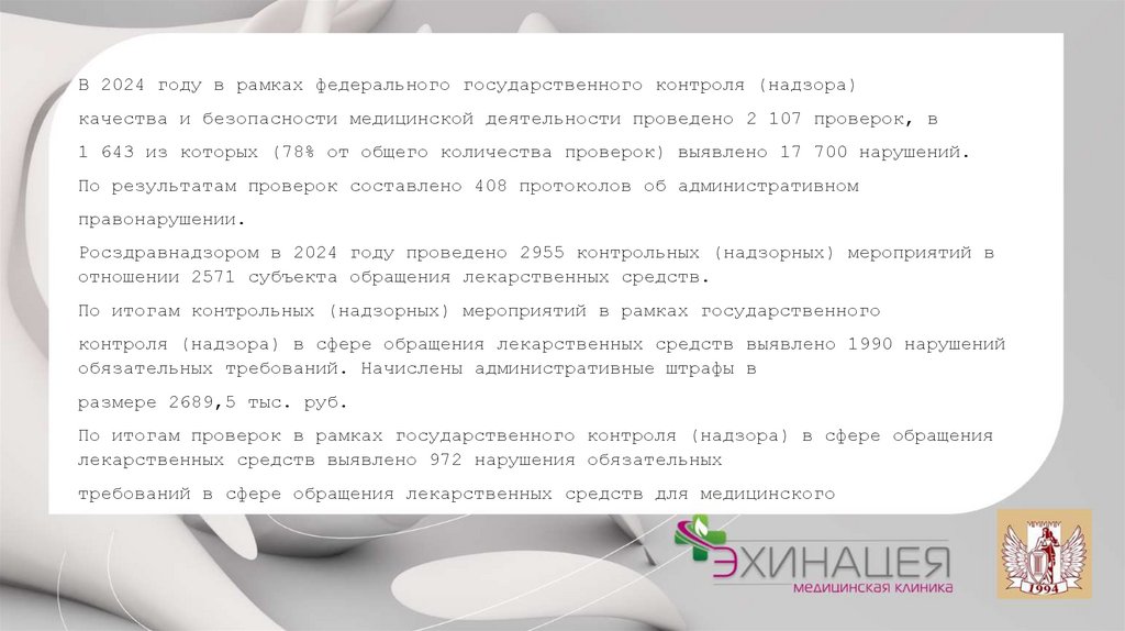 Росздравнадзором в 2024 году проведено 2955 контрольных (надзорных) мероприятий в