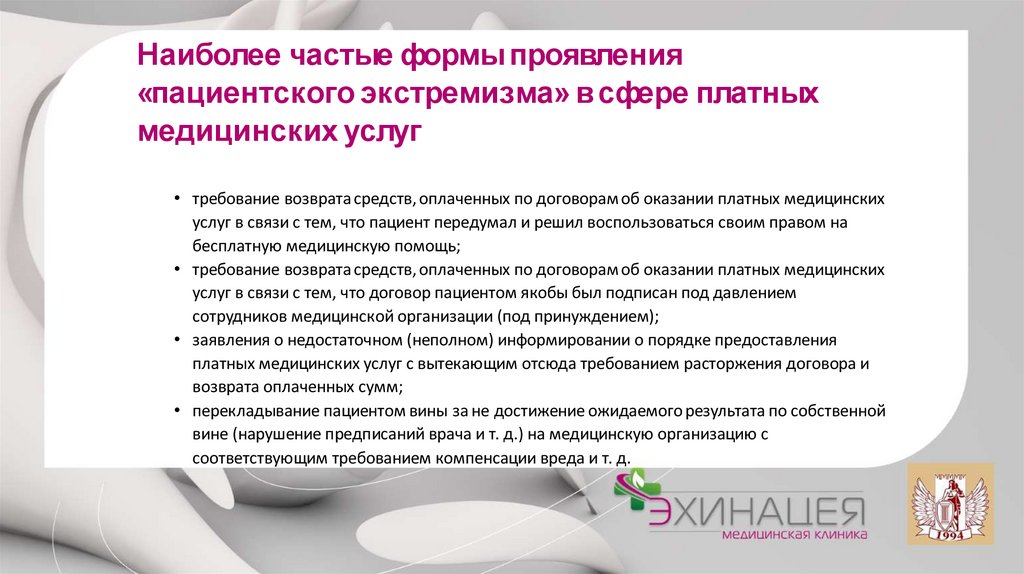 необоснованность заявляемых в ходе конфликта требований со стороны пациента;