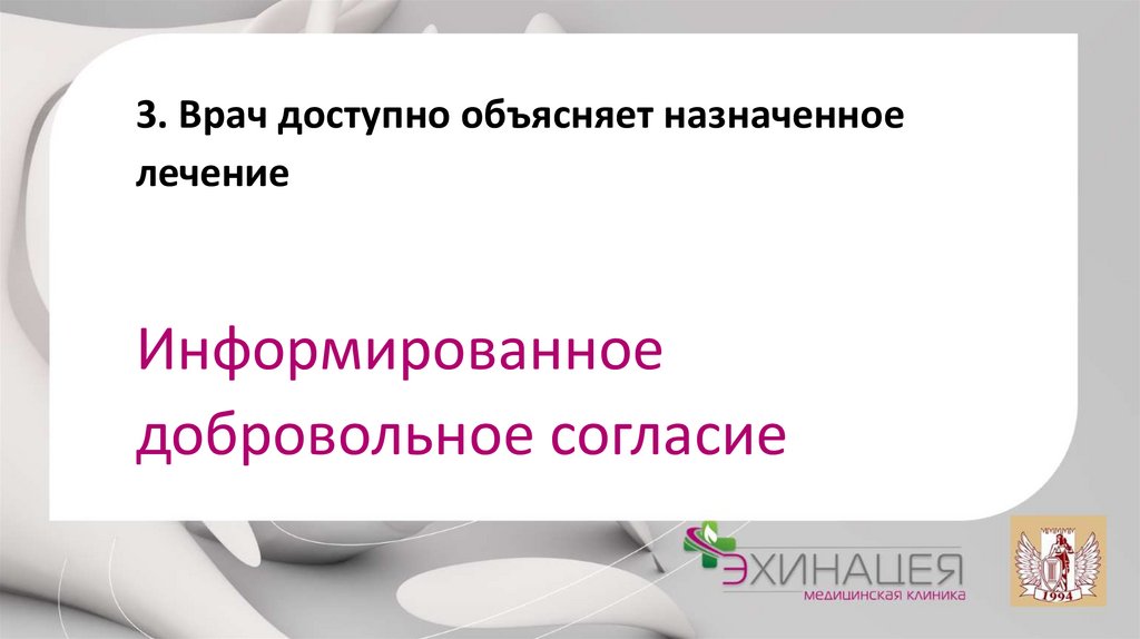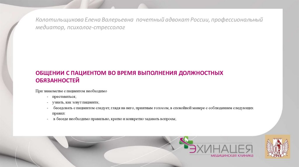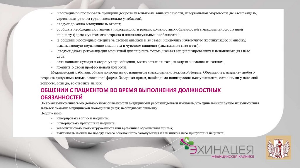 - способствует снижению тревоги и недоверия к конкретному врачу и системе