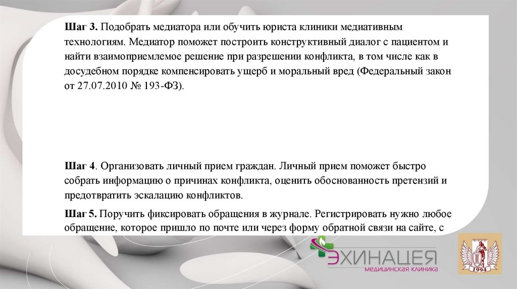 Процедура медиации приработе с жалобами пациентов