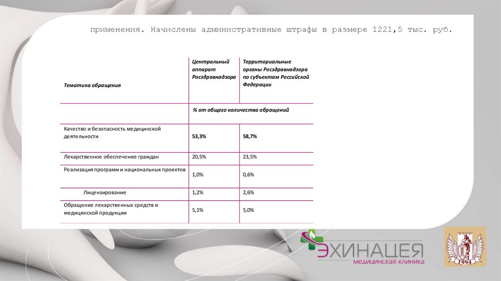 применения. Начислены административные штрафы в размере 1221,5 тыс. руб.Центральный