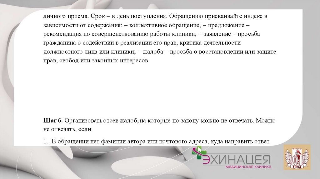 Шаг 6. Организовать отсев жалоб, на которые по закону можно не отвечать. Можно