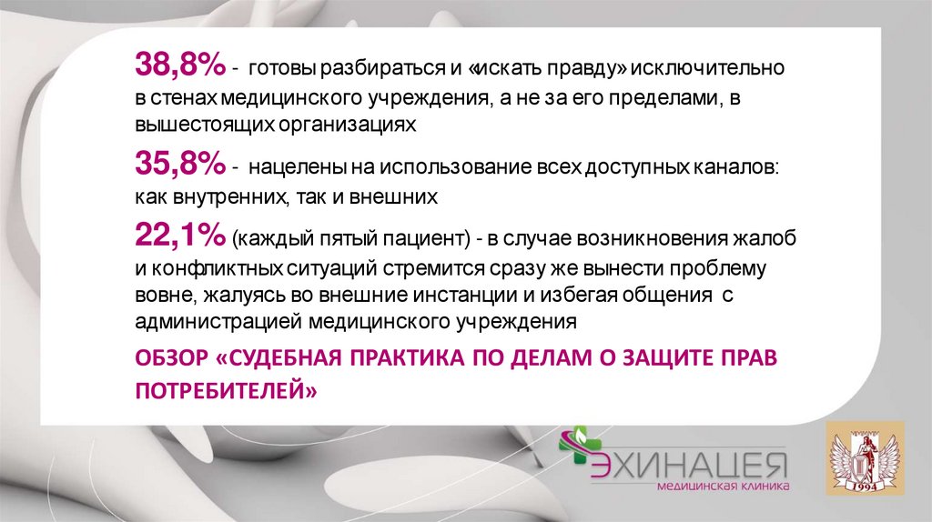 подтвердились, то объясните, почему клиника не удовлетворит жалобу.